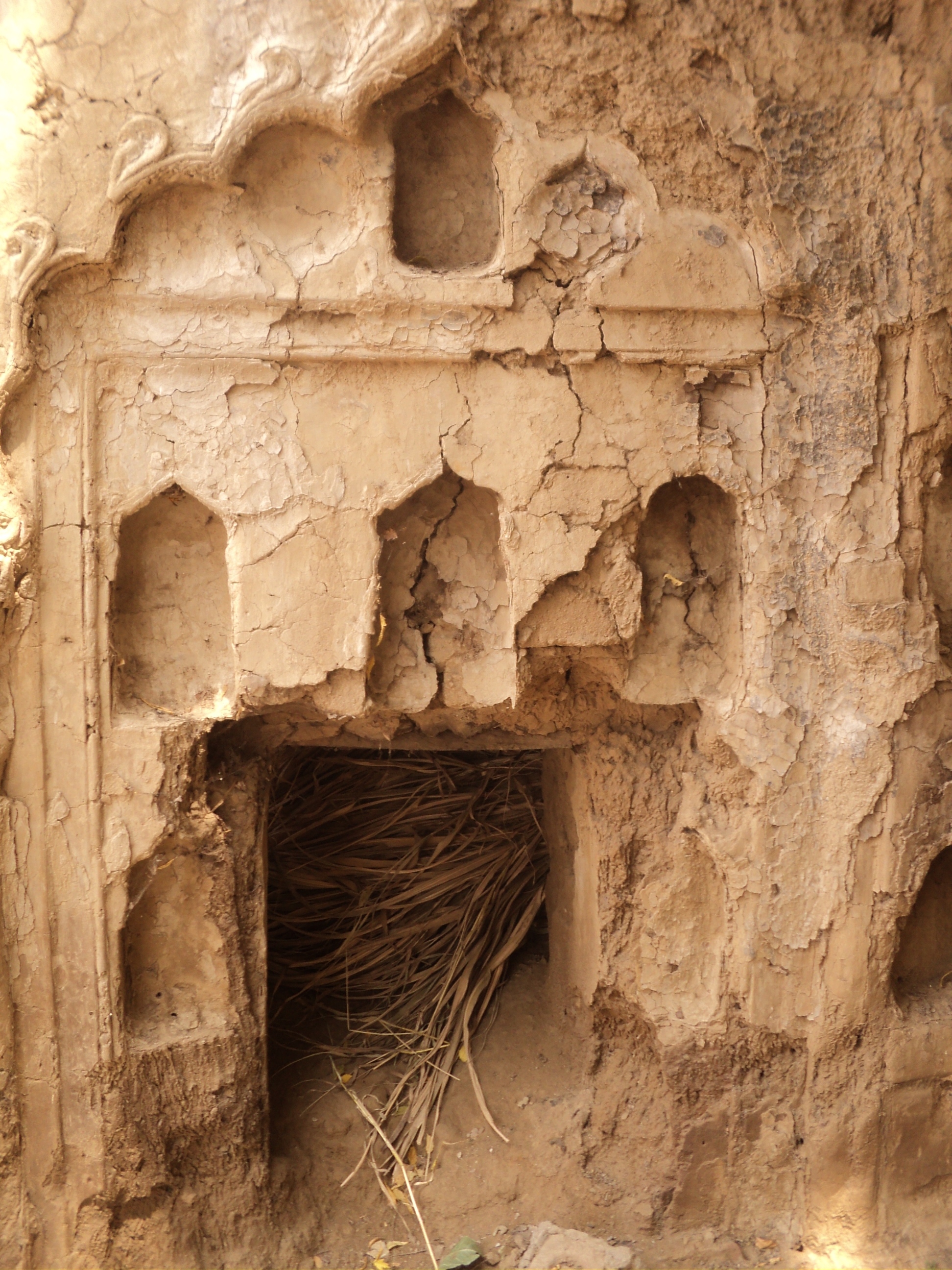 Primary Materials Used: Adobe (Sun Dried Mud Brick), Baked Brick, Mud Mortar, Slaked Lime, Red Sandstone Slabs, Sarkandi(Reed) Thatch, Neem Wood
