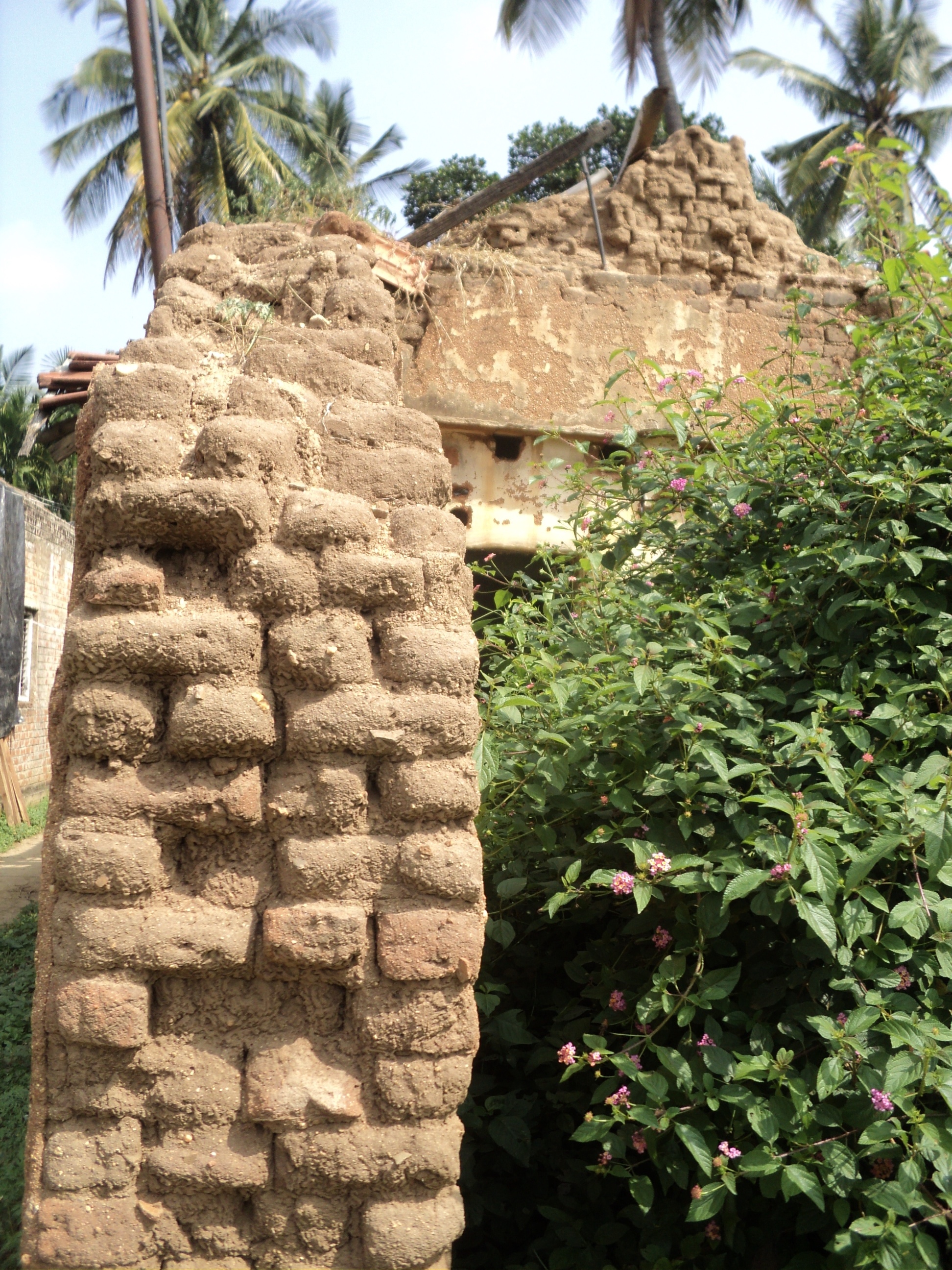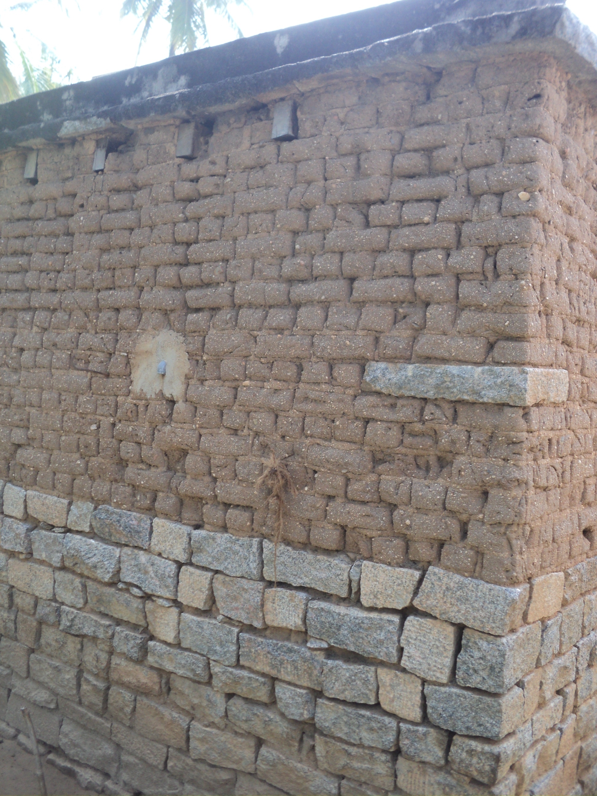 The Tumkur district of Karnataka lies on the leeward side of the Western Ghats due to which its average annual rainfall is much lesser than Udupi although they both are on the same latitude. The material of choice of the indigenous people been adobe, made of mud, sand, rice straw, the latter being added to act as fibrous reinforcement to prevent excessive cracking when dried. Like Uttar Pradesh, the size of the brick is 9”*4.5”*3” and wall thickness do exceed 18”. These houses are generally only ground floor high.