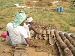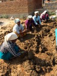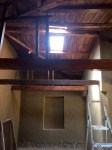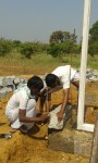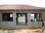 The load bearing walls of the building have a strip foundation of roughly cut granite stones with mud mortar. The foundation has a depth of 3’ below which the hard strata begins. Once the buildings emerge above the ground, granite blocks dressed on site by skilled masons are used. All the granite is available from a nearby stone quarry. These are put together using a stabilized cement mud mortar of 1 part cement, 6 part sand and 6 part mud. An RCC plinth band is cast at the plinth level that runs across all the walls and doubles up as a DPC. Neem wood the door frames and placed and external walls are raised in dressed granite to the window cill level. This is done to prevent the erosion of mud on exterior walls due to splash back of the rain. Interior walls need only a single course of stone after which the mud walls can begin.