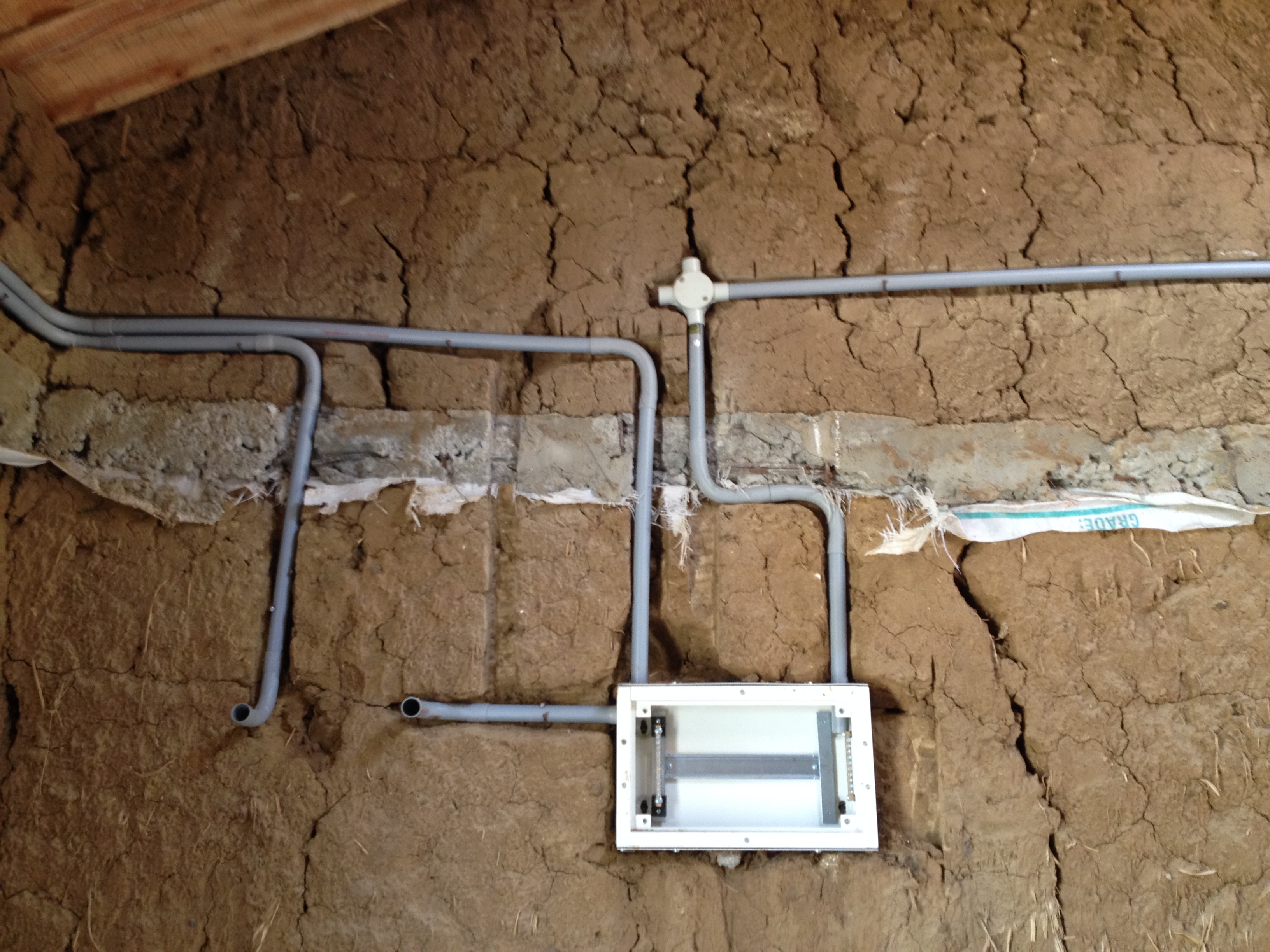 Electrical conduits in mud wall-pre plaster