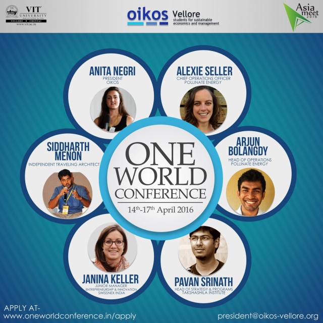 Will be speaking at the oikos Asia Meet 2016: One World Conference on ‘Sustainable Architecture and Rural Communities in India’ http://www.oneworldconference.in Date: 15 April 2016 Place: Vellore Institute of Technology, Vellore, Tamil Nadu